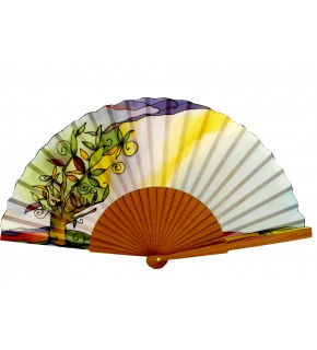 Abanico de seda natural pintada a mano. Tamaño mediano 23 cm