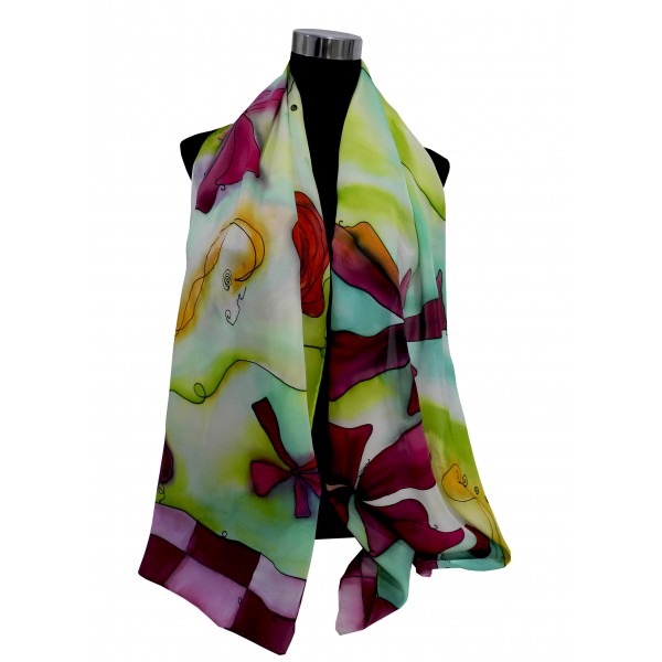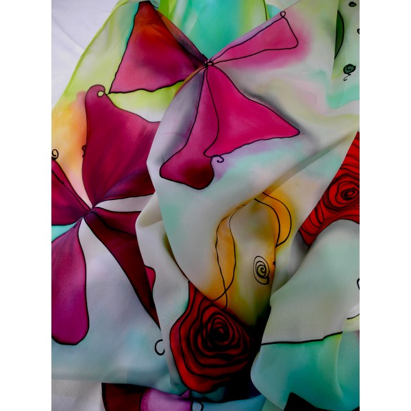 Añade un toque de arte y elegancia a tu estilo con este exclusivo fular pintado a mano, una pieza única que combina suavidad, color y diseño