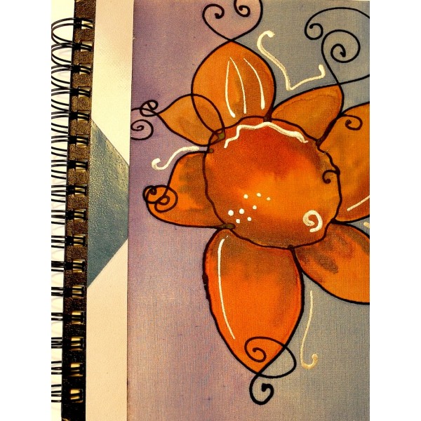 Libreta decorada con seda pintada a mano. Título: SOL NARANJA