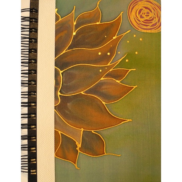 Libreta decorada con seda pintada a mano. Título: GIRASOL ORO